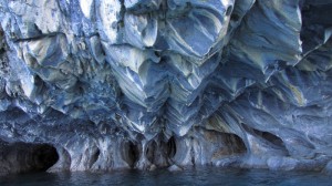 Der zweitgrößte See Südamerikas, der General Carreras, empfängt uns mit einem schimmernden Grünblau, eine kurze Bootstour bringt uns zu rausgewaschenen Marmorhöhlen, die aussehen wie die weißblauen Zähne eines Riesendrachen.