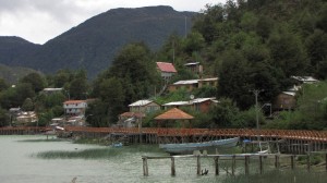 Staubig geht die Fahrt weiter Richtung Süden, entlang am Rio Baker. Tiefblau und voller Lachse ist er der wasserreichste Fluß Chiles und hat sich tief zwischen das nördliche und südliche Inlandeis hineingeschnitten – der größten Eis und Gletschermasse außerhalb der Pole und Grönlands. Dort wo er ins Meer mündet liegt der pittoreske Ort Tortel, ein Fischerdorf deren Häuser nur über Holzstege und Brücken zu erreichen ist. Dunkel und düster ragen über tausend Meter hoch die Berge aus dem Meer, ein Fjord wie in Norwegen.