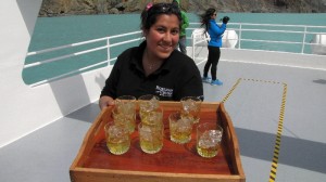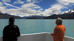 Einmal die Woche fährt ein Versorgungsschiff zum entlegenen Grenzposten Candelaria Mansilla, und wenn Leute da sind, weiter zum mächtigen O Higgins Gletscher. Wieder so ein unglaublicher Tag – der smaragdgrüne Gletschersee mitten in den schneebedeckten Anden, der sich wie ein verzweigtes Ungetüm über 100 km weit in den tiefen Tälern ausbreitet. Krachend brechen immer wieder 40m hohe Eistürme von der 3km breiten Gletscherfront – wir starren wie gebannt auf dieses Schauspiel der Natur. Dann bringt ein Schlauchboot 1000 Jahre altes Gletschereis und wir kriegen „Whiskey on the rocks“ vom Kapitän serviert- total verrückt!