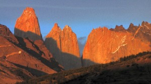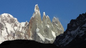 Für unsere Quälerei bedankt sich nun der Wettergott in den nächsten Tagen: am Morgen peitschender Sturm, grau und regnerisch, egal wo wir dann zu Fuß oder mit dem Bus eintrudeln, reisst es auf, die Sonne strahlt und wir stehen zum Beispiel staunend vor den Granittürmen des Fitz Roy und Cerro Torre, wir machen im schönsten Sonnenlicht tausend Fotos am unglaublichen Perito Moreno Gletscher und können es gar nicht glauben, dass sich am Gletschersee unterhalb der 2800m hohen Paine Türme sich nicht mal ein Windhauch regt – trip of a lifetime!
